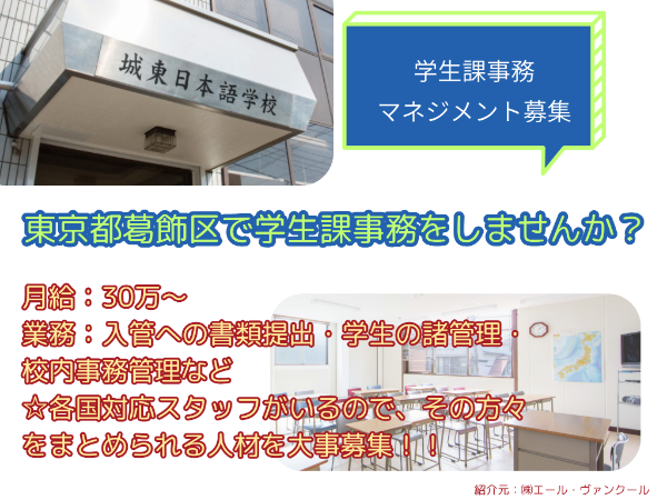 | 職種 | 日本語学校 学生課事務マネージャー |