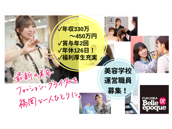 「美容業界でプロとして活躍する!」そんな想いを叶えるための資格とスキルを備える人材を育てる【福岡ベルエポック美容専門学校】の運営職員を募集。