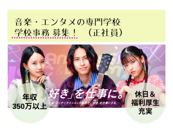 | 職種 | 音楽エンターテイメント専門学校 学校事務 |